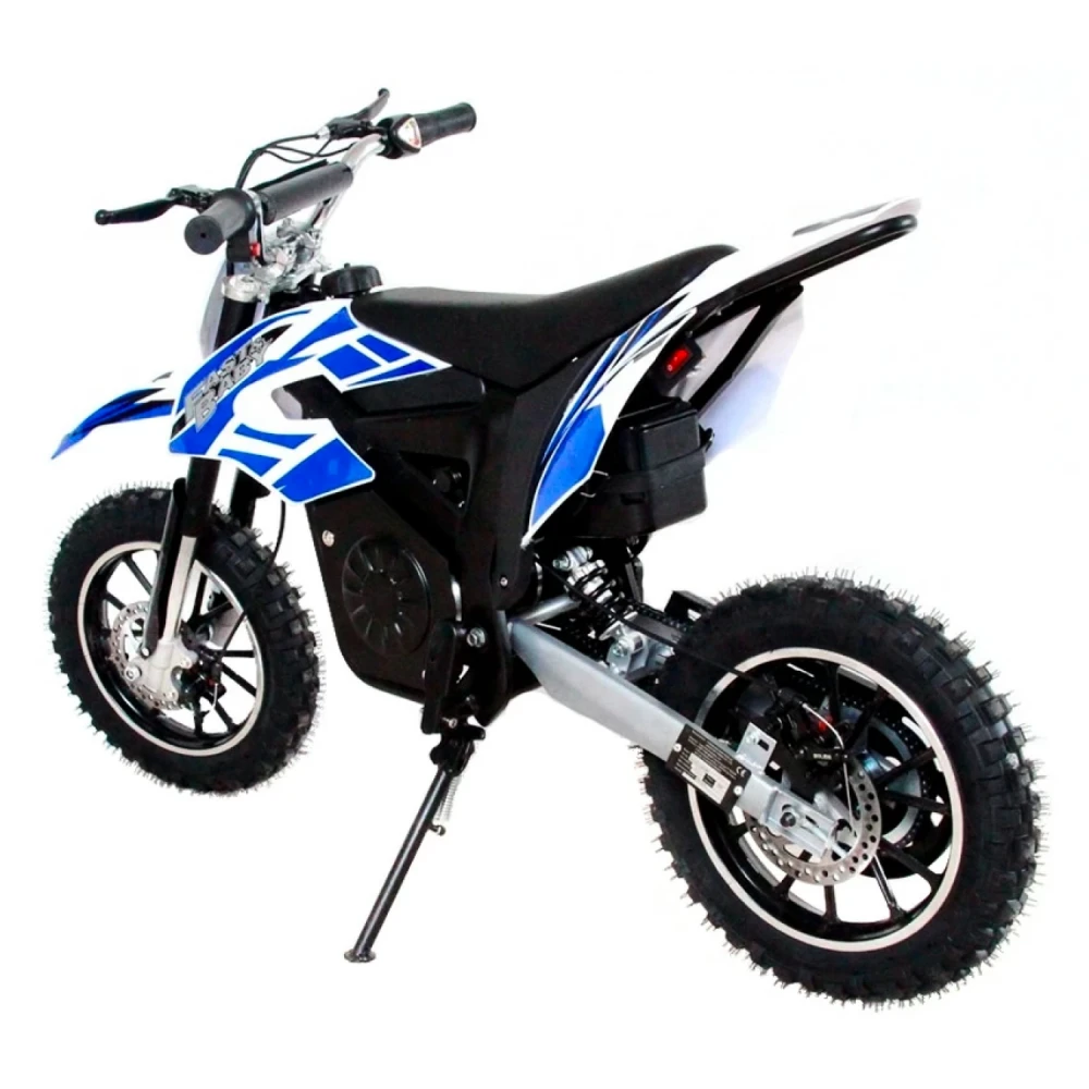 GreenCamel Питбайк DB400 Синий – замечательный электромотоцикл, который прекрасно подойдёт детям в возрасте от пяти лет. Это симпатичный шустрый домашний питомец, который доставит много радости юному автолюбителю и преподаст первые уроки управления транспортом. С ним вы легко отвлечёте ребёнка от телефона или компьютера, и он сможет больше времени проводить на свежем воздухе.