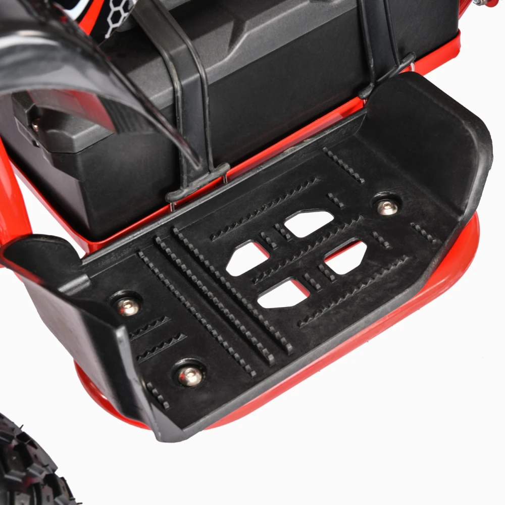 Квадроцикл представлен полной комплектацией, рассчитан на возрастную категорию от 3 до 9 лет. При мощности двигателя 1500 Вт способен развивать серьезную скорость – до 49 км/час. Продолжительность пути на одной подзарядке составляет 50 км. Максимальная грузоподъемность – 95 кг.