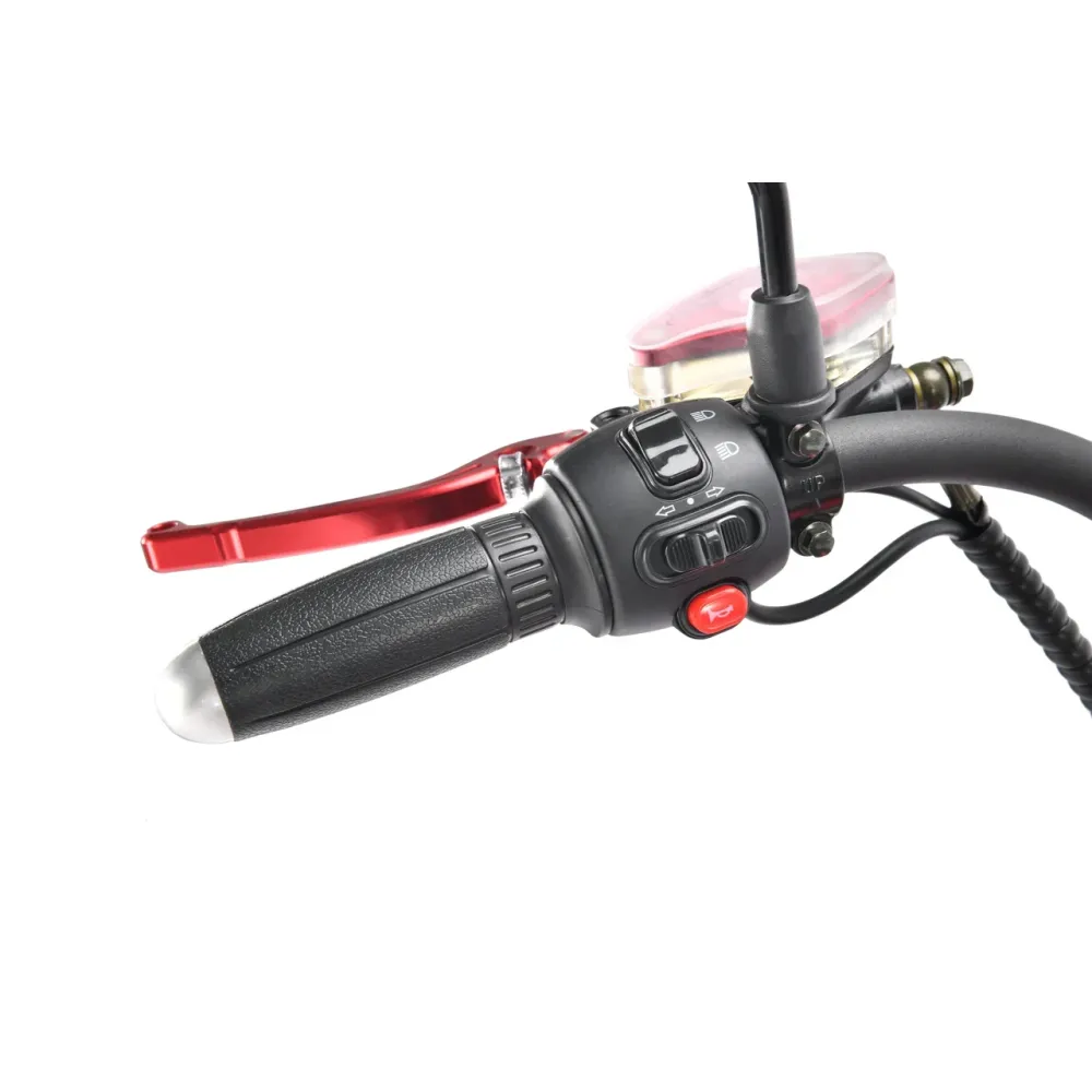 Модель оснащена 12-дюймовыми вездеходными колесами, позволяющими преодолевать препятствия по городской и непроходимой местности. Двигатель мощностью 3950 Вт допускает развитие скорости до 71 км/час. Мощное АКБ с полной зарядкой до 6 часов остается работоспособным до 40 км пути.