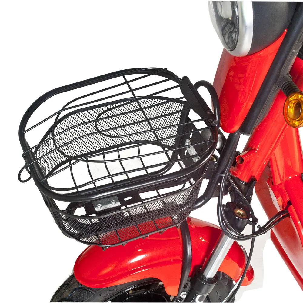 Электроскутер Jetson GM-60 – одно из лучших средств передвижения по городу. Он совмещает себе скорость и комфорт. Широкое, толстое сидение с прямой посадкой из прочной и долговечной эко-кожи прекрасно подходит для длительных поездок. На руле электроскутера располагаются понятные кнопки управления светом и переключения передач, анатомические рычаги тормоза и ручка, выполненная из цепкой резины. Практичные барабанные тормоза останавливают GM-60 плавно, но эффективно. Также плавности движения способствуют широкие 16-дюймовые колёса, которые с лёгкостью преодолевают различные неровности и придают скутеру манёвренности. Поездки в ночное время сделают безопаснее мощные габаритные огни и яркий LED-фонарь, расположенный на руле. Электромотор мощностью 450 Ватт даёт возможность разогнать скутер до 50 км/ч, а съёмная свинцовая аккумуляторная батарея с ёмкостью 20 Ач позволяет проезжать до 80 километров без подзарядки. Приятным бонусом для пользователя станут корзинка для личных вещей и сидение для пассажира, идущие в комплекте со скутером.