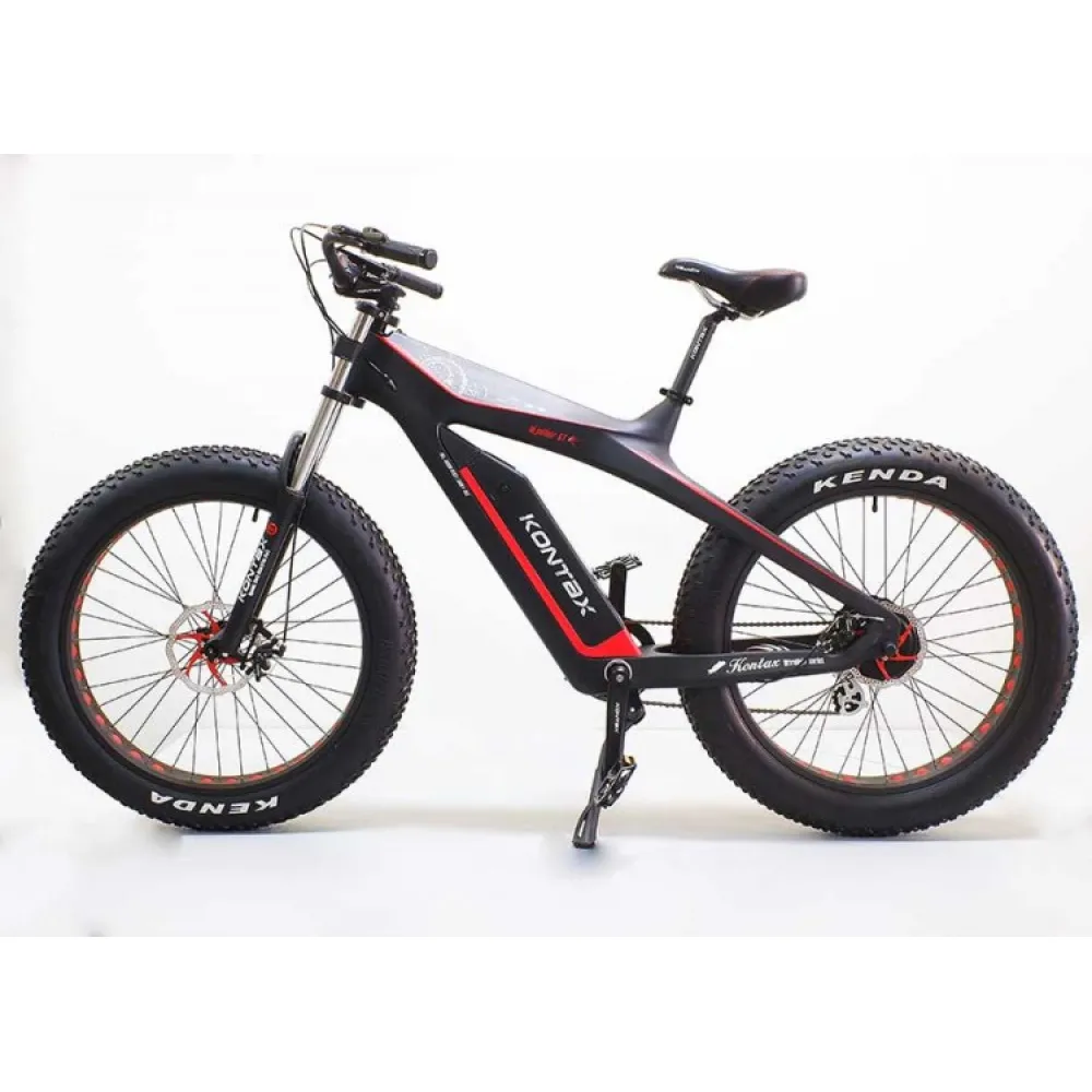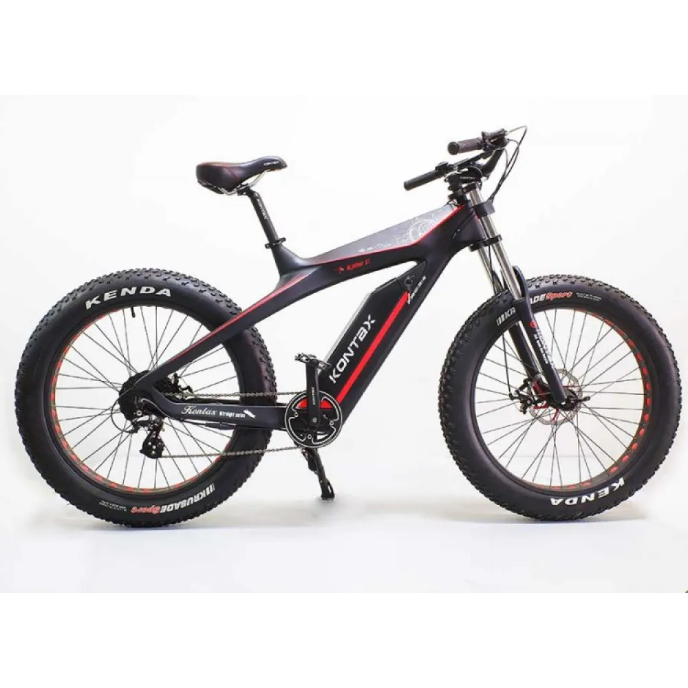 Электровелосипед GreenCamel Kontax (R26FAT 750W Bafang 48V LG 13Ah) - велогибрид от российской компании, предназначенный для поездок по нервным, изрытым, холмистым участкам дорог. Имеет мотор мощностью 750 Вт, показатель разгона скорости которого достигает 45 км/ч. При максимальной нагрузки на карбоновую раму в 120 кг, вес самого транспорта составляет всего 29 кг. Велогибрид оснащен 48 V аккумуляторной батареей ёмкостью 13 Аh, которой достаточно для преодоления расстояния до 50 км. Полное восстановление заряда всего за 5 часов. Лёгкая карбоновый рама хорошо смягчает толчки при езде, а в случае ремонта не утратит своих качеств. Яркий LCD-дисплей 8FUN C18S имеет расположение на руле из алюминиевого сплава, любую информацию системы на нем видно невыносимо от времени суток. Колеса оснащены износостойкими надежными дисковыми тормозами WINZIP.