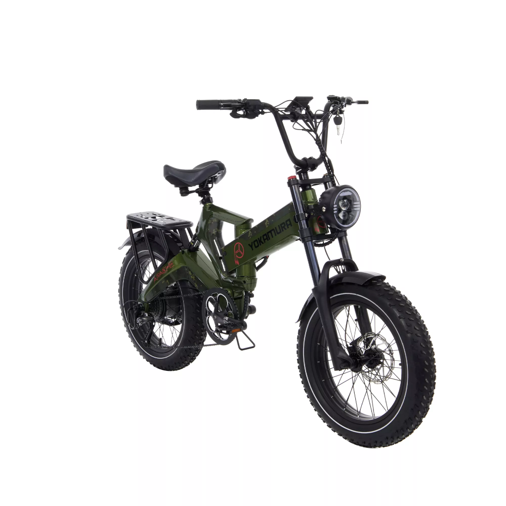 Электровелосипед Yokamura Apache Military Green - это сочетание силы, скорости и стиля. С мощным задним приводом и мотор-колесом 1000W, он способен развивать скорость до 50 км/ч, обеспечивая быстрое и уверенное передвижение.