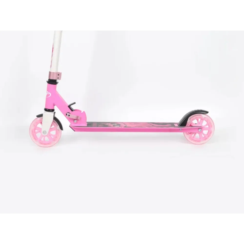 Характеристики самоката рассчитаны на безопасную езду по городской местности и парковой зоне. Полиуретановые колеса в сочетании с нестираемыми колесами и реакцией маленького райдера способны творить чудеса. Детский самокат способен развивать необходимую скорость, маневрировать. Модель оснащена задним тормозом, дека оформлена устойчивой нескользящей шкуркой, минимизирующей травмирование и случайное падение.