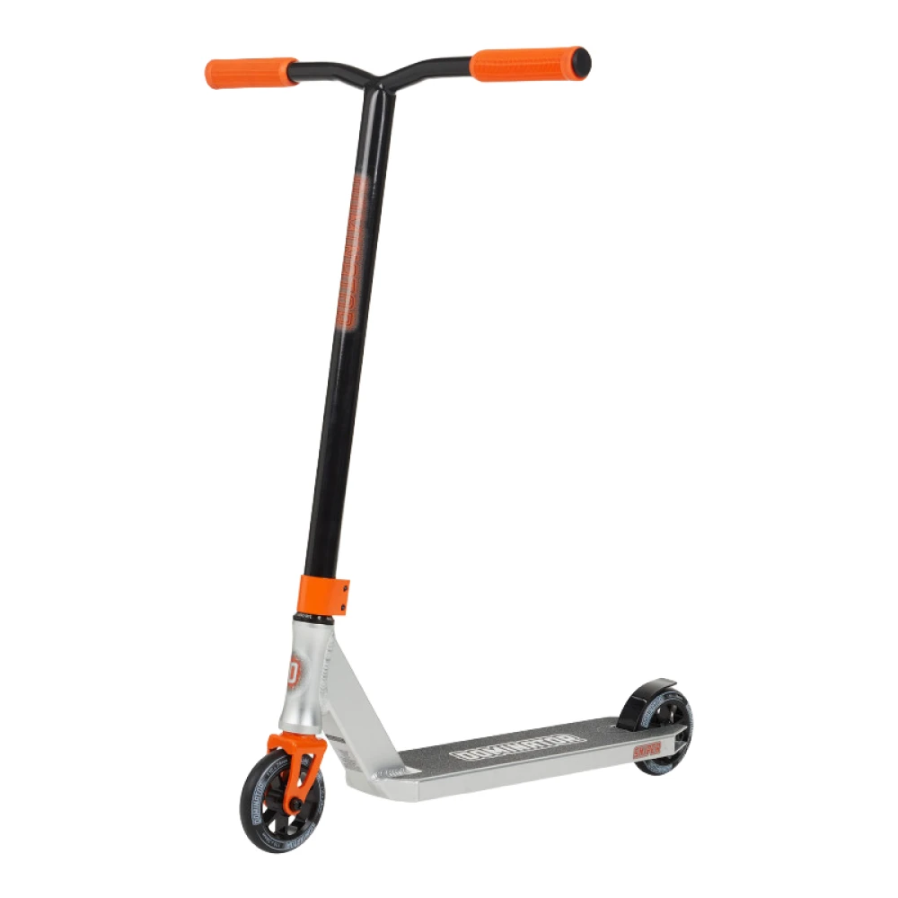 Трюковой самокат Dominator Sniper черно-серебристый – эргономичная модель весом 3,7 кг изготовлена в минималистичном дизайне. Выглядит современно. Гарантирует массу приятных впечатлений от высококлассных прыжков. Считается лидером продаж в своем сегменте. Приобрести трюковую модель самоката по демократичной стоимости без посредников предлагает наш интернет-магазин.