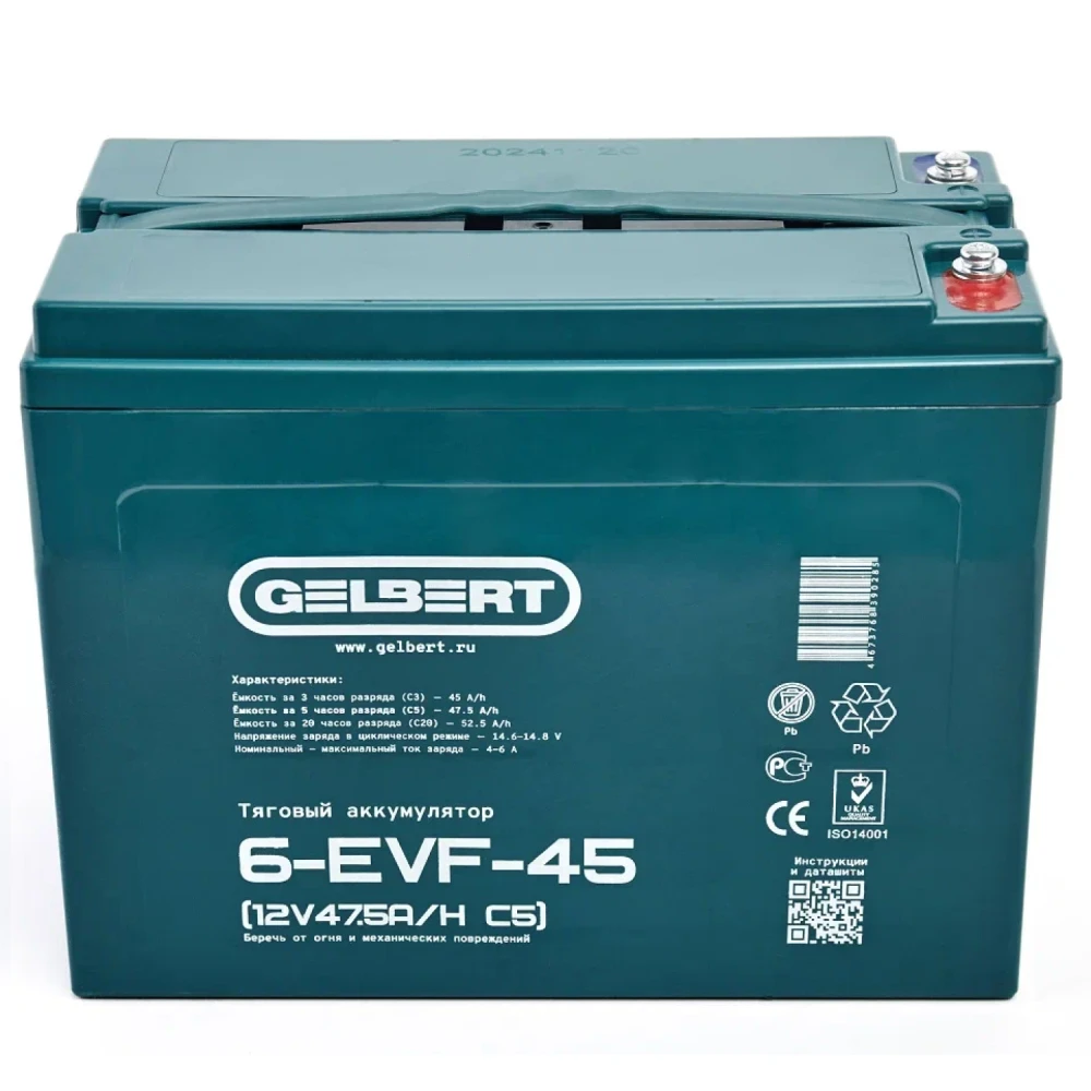 Тяговый аккумулятор Rutrike Gelbert 6-EVF-45 (12V47.5A/H C5)